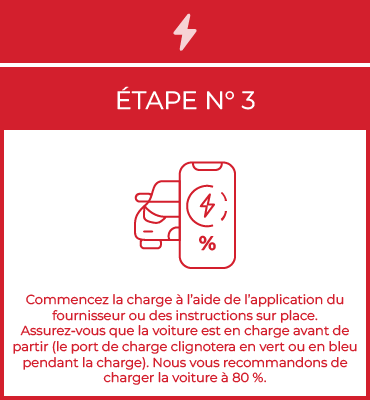 Vous devez restituer votre voiture électrique avec un niveau de batterie d'au moins 70%, ou le même pourcentage de charge de batterie que lorsque vous avez pris en charge le véhicule.